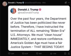 特朗普下令解雇所有剩余的“拜登时代”联邦检